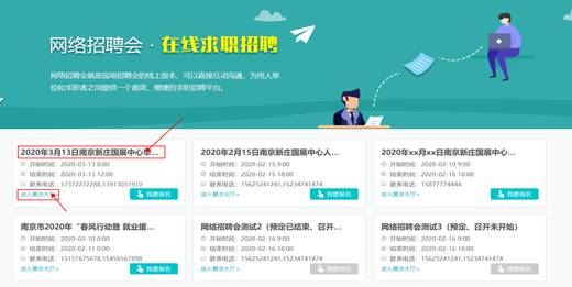 1、毕业生登录甘肃人才网(www.gszhaopin.com),点击菜单栏“招聘会”—“网络招聘会”进入二级页面菜单,进入网络招聘会列表,点击“陇南师范高等专科公司2021年冬季高校毕业生网络视频双选会”标题或“进入展会大厅”按钮进入网络招聘会大厅。
