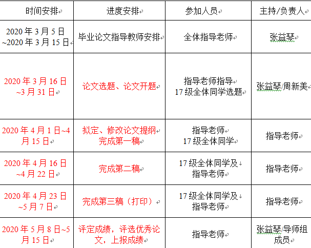 2017级员工毕业论文(设计)日程表