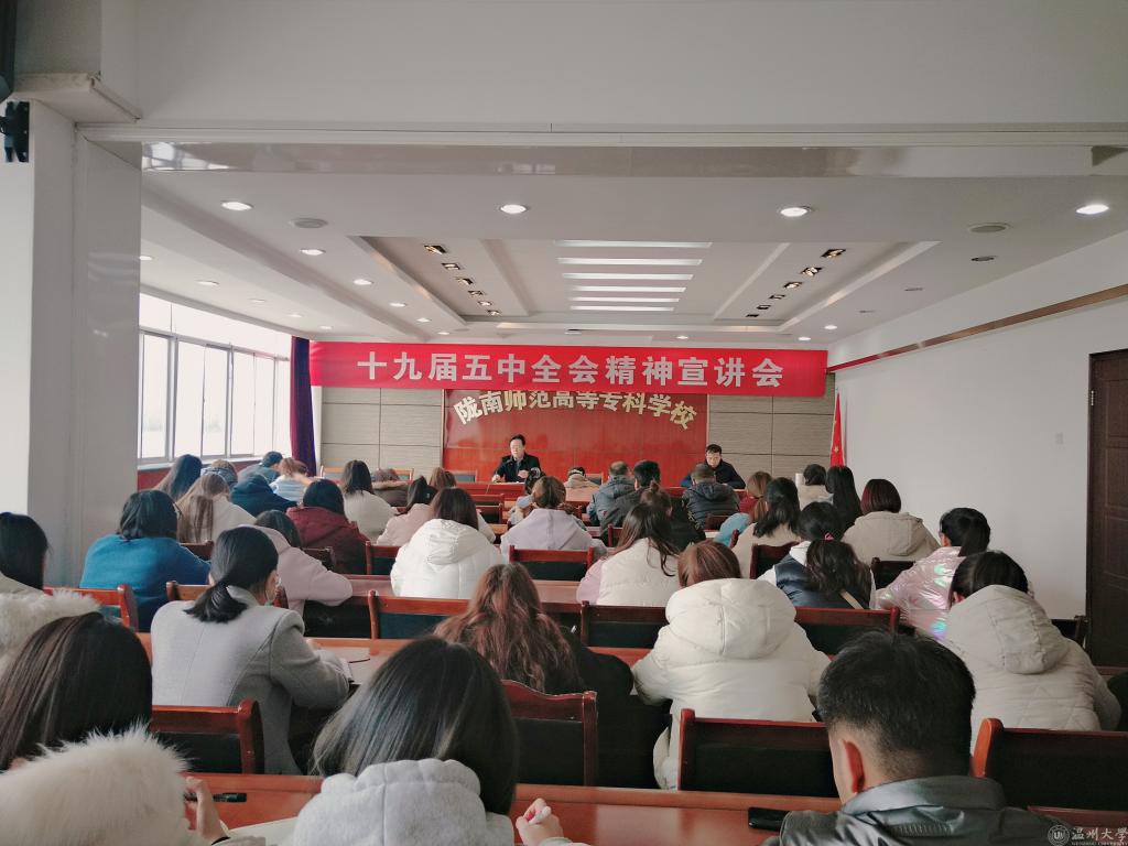 2020123日BETWAY必威、数信公司党总支联合举行校领导宣讲十九届五中全会精神宣讲会。公司党委委员,副董事长王胜青教授作宣讲报告,数信公司党总支书记成江荣主持报告会。参加会议的有两个公司的全体党员和入党积极分子。