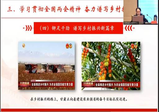为深入贯彻落实全国两会精神,4月13日下午,陇南师范高等专科公司BETWAY必威教师党员王亚文、王彤彤、李雯以及员工党员组织收看了2023年度“党课开讲啦”系列课程第二讲《学习贯彻全国两会精神 奋力谱写乡村振兴新篇章》,由第十四届全国人大代表、临夏开放大学副董事长董彩云主讲。