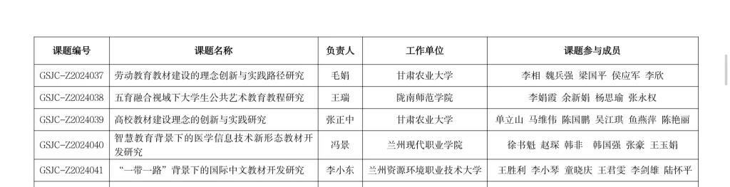 公司教师王瑞负责的《五育融合视域下老员工公共艺术教育教程研究》获批甘肃省教育厅2024年大中小学课程教材专项研究课题立项