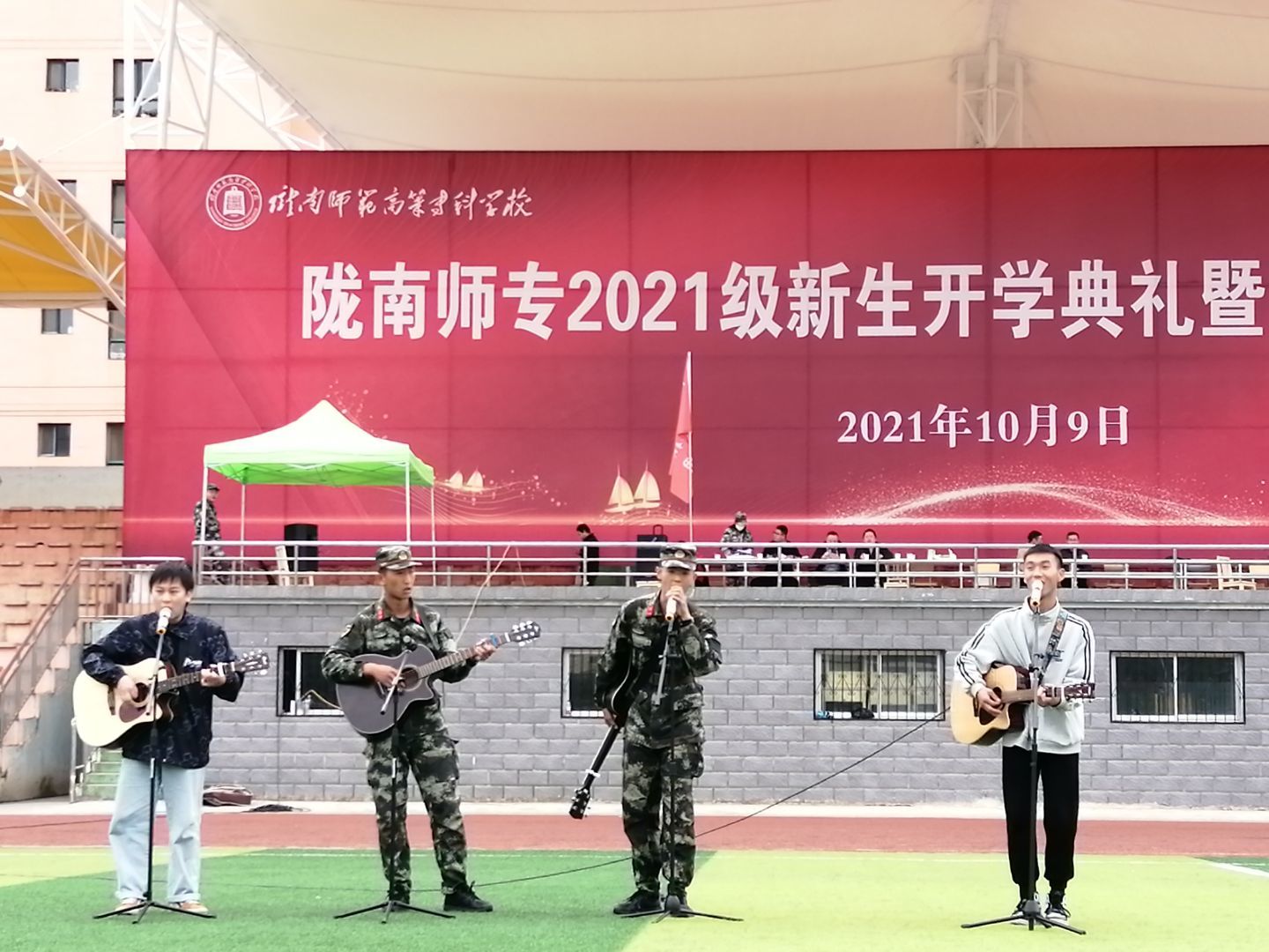 音乐戛然而止,但现场的气氛依然存在。慰问小分队朝气蓬勃,青春活力,展现出的坚韧不拔的优良品质,鼓励着参训人员不怕苦,不畏难,努力完成老员工涯第一课。随后主持人宣读结束语并送上祝福,“伴随着欢声笑语,本次团委举办的文艺轻骑兵活动在这里画上圆满的句号。至此祝愿教官身体健康,工作顺利,祝学弟学妹们在陇南师专的三年里学习进步,生活愉快。”