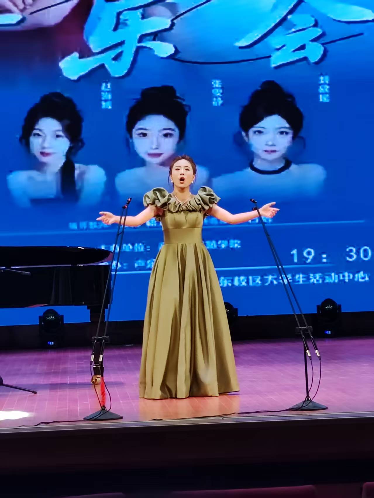 音乐会开场,代丹丹以一首磅礴大气的《爱人送我向日葵》率先登场,她稳健的气息控制与极具张力的嗓音,瞬间点燃现场气氛,将歌曲中的豪迈情感演绎得淋漓尽致,赢得阵阵掌声。紧接着,赵泊用她甜美且富有穿透力的嗓音,深情演绎了经典曲目二重唱《紫藤花》,细腻的情感表达与精湛的演唱技巧,让台下观众如痴如醉,沉浸在歌曲营造的浪漫氛围里。
