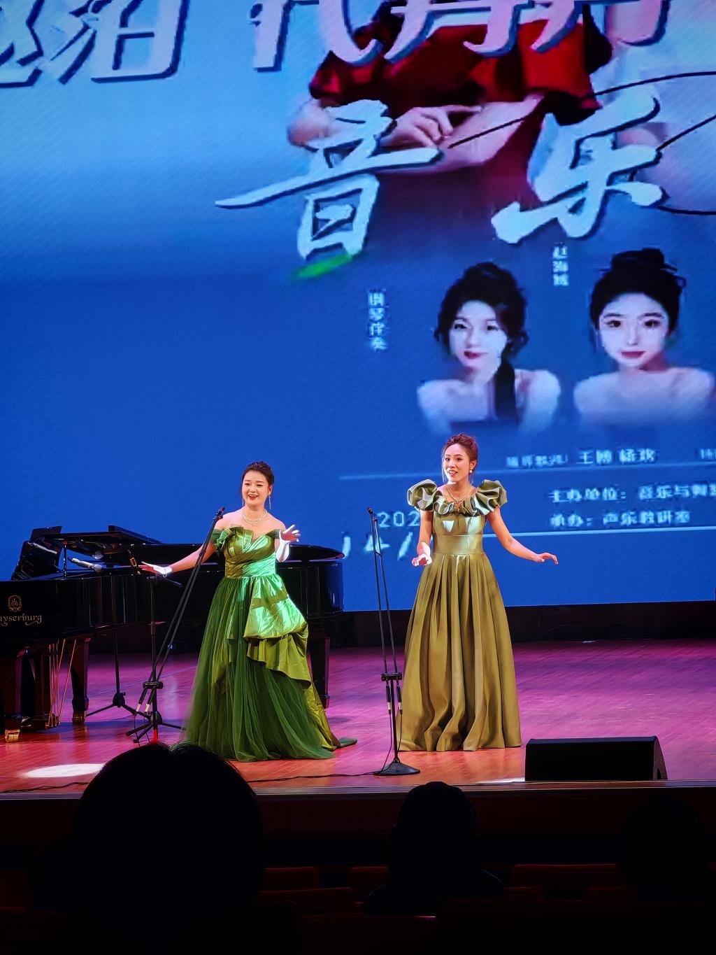 在随后的演出中,二人的合作曲目更是将音乐会推向一个又一个高潮。赵泊与代丹丹灵动的女高音相互交织,和声完美融合,生动展现出民歌的独特韵味,唤起观众对民族音乐的热爱与共鸣 ;而在演绎现代流行改编的《相思》《锦瑟》时,他们加入独特的音乐元素,以富有节奏感的演绎方式,赋予歌曲全新活力,现场观众不禁随着旋律轻轻摇摆,掌声与欢呼声此起彼伏。